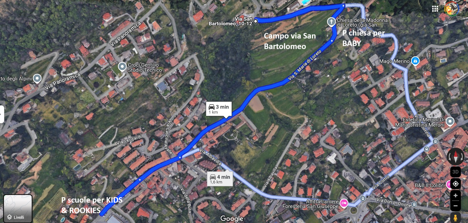 - P Istituto comprensivo di Albavilla – per KIDS & ROOKIES google maps -> https://maps.app.goo.gl/NA9wMbo13Kd1EHm98 , 5 min. pedalati